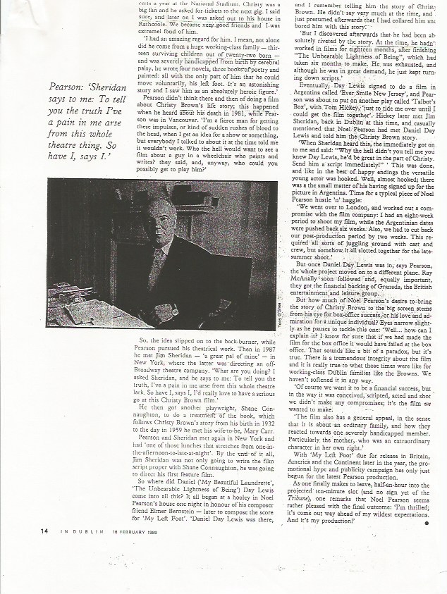 Published Leftfooters (Interview with My Left Foot producer Noel Pearson) by endardooDec 28, 2015 Comments 0 (IN DUBLIN, February 16th, 1989) (Note: the sub-heading might imply Gerry McCarthy and I co-wrote both pieces; Gerry interviewed Jim Sheridan and I interviewed Pearson) Share this: Click to share on X (Opens in new window) X Click to share on Facebook (Opens in new window) Facebook Click to share on Pinterest (Opens in new window) Pinterest Like Loading... 0 comments on “Leftfooters (Interview with My Left Foot producer Noel Pearson)” Leave a comment Cancel reply Δ This site uses Akismet to reduce spam. Learn how your comment data is processed. Post navigation Previous Post Next Post