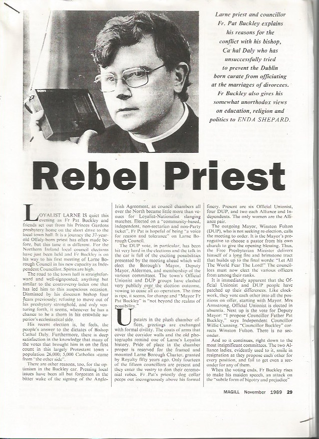 Political Published Interview with rebel priest Pat Buckley by endardooApr 23, 2016 Comments 0 (MAGILL, November 1989) Share this: Click to share on X (Opens in new window) X Click to share on Facebook (Opens in new window) Facebook Click to share on Pinterest (Opens in new window) Pinterest Like Loading... 0 comments on “Interview with rebel priest Pat Buckley” Leave a comment Cancel reply Δ This site uses Akismet to reduce spam. Learn how your comment data is processed. Post navigation Previous Post Next Post