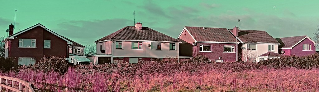 I walk the dogs out the back of our house every morning, and across a field is the group of five houses you see in the second picture.