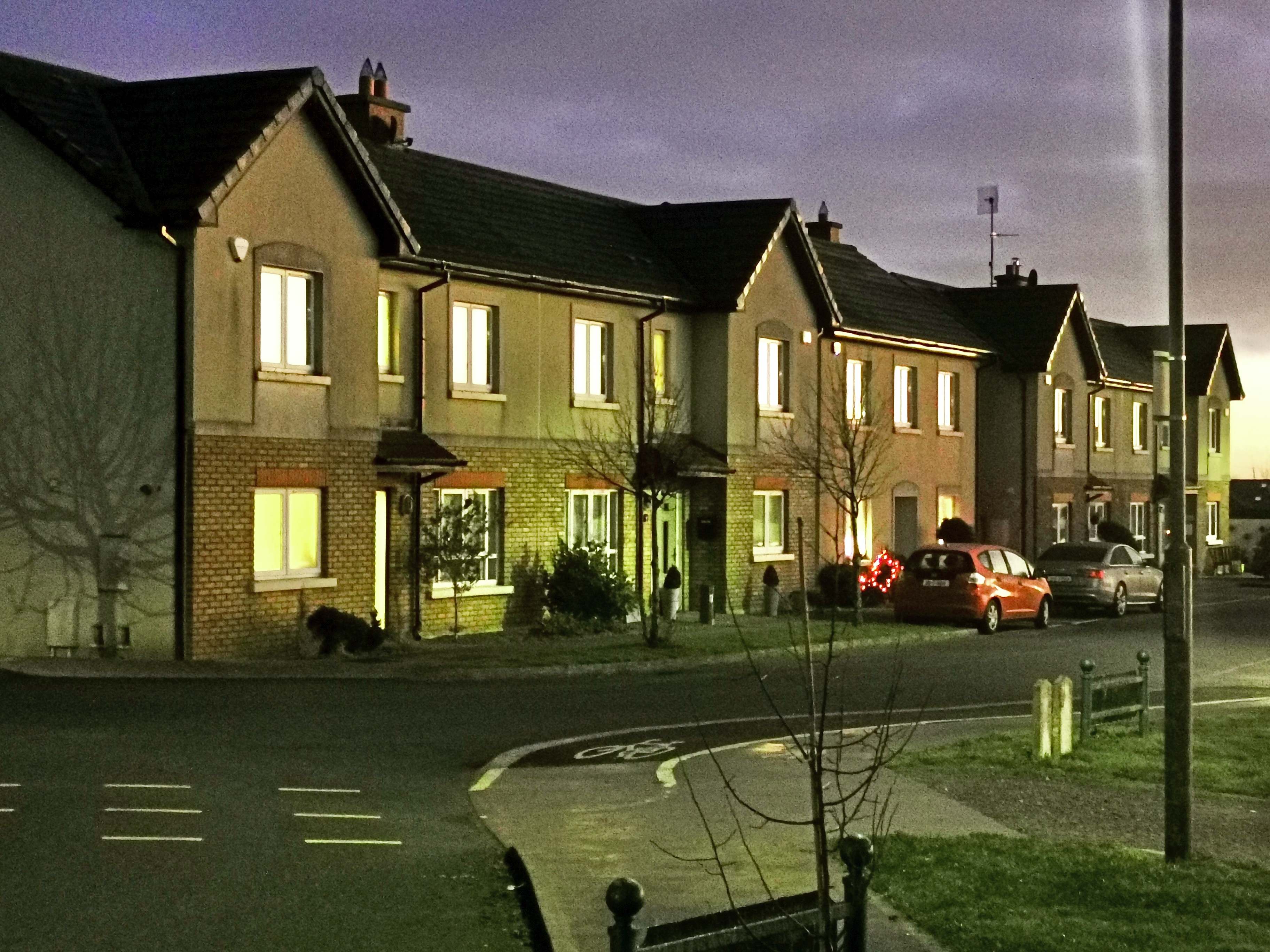 I walk the dogs out the back of our house every morning, and across a field is the group of five houses you see in the second picture.