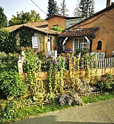 Joel and Cathou tell me their tenants have done a brilliant job on the house, and it certainly looks gorgeous from the outside, all pink clay roof tiles and shuttered windows, ancient trees, effusive flowering shrubbery and scrambling vines. The little maisonette adjoining the main house and which I slept in a few times is still there too.