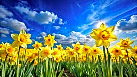 Spring is well sprung and this airy bright March morning is bursting with possibility. The daffs are swaying, and the blossoming buds are shooting towards us from the apartments on the far side of the green. On their way to school.