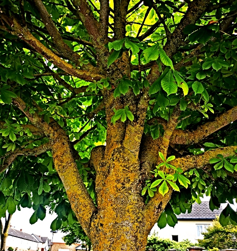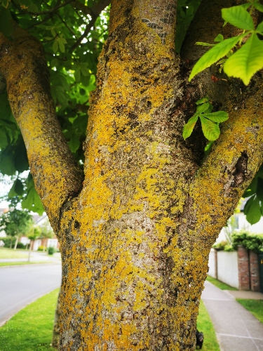 These are living too, these organisms embellishing and embossing the wood’s shiny surface. Adding colour and texture to bough, limb, twig, shoot and offshoot. But functional too, agents of photosynthesis, harnessing natural energy from above, converting sunlight, water, and carbon dioxide into sugars for energy and accelerated growth.